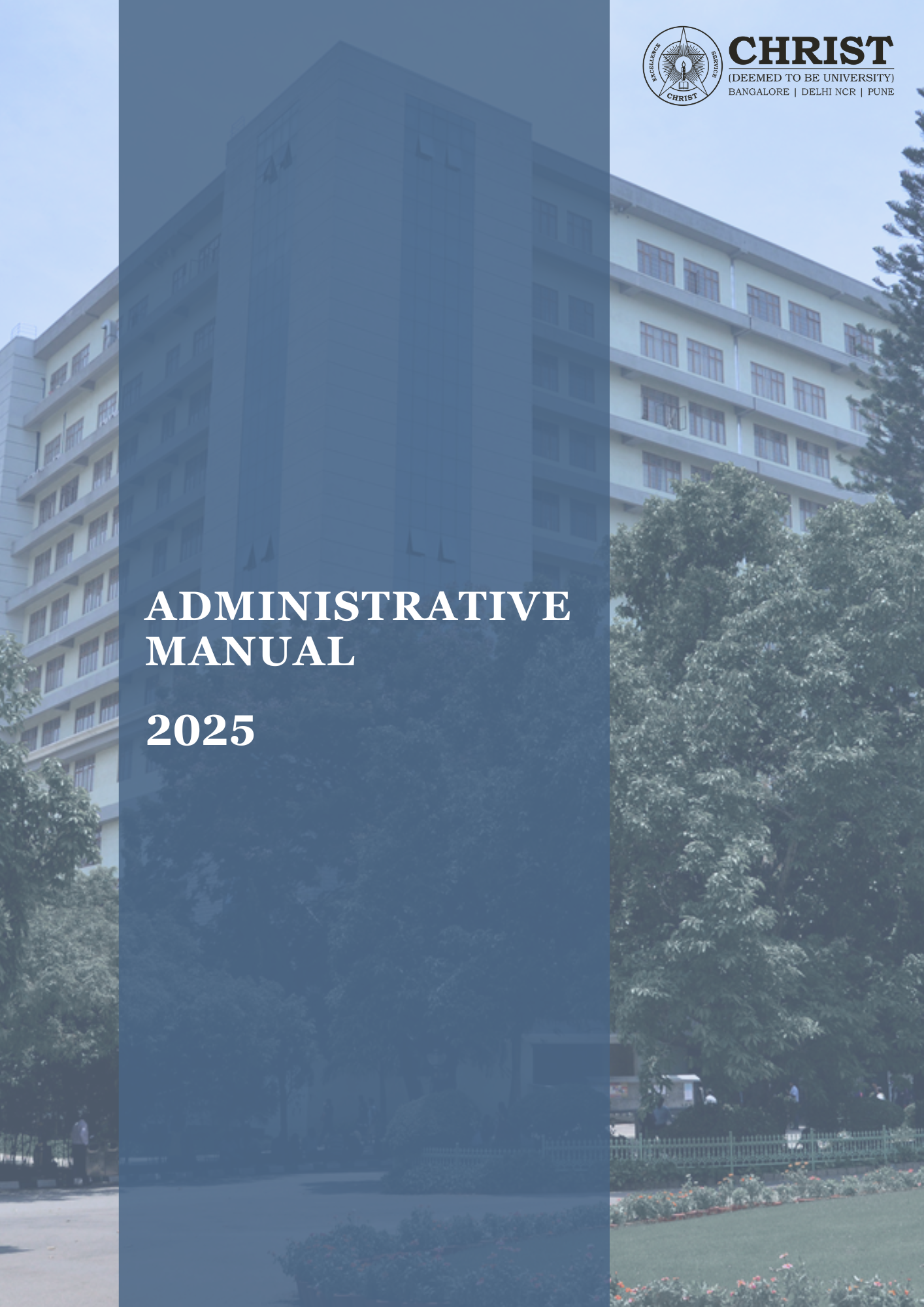 The Administrative Manual of CHRIST (Deemed to be University) is a comprehensive document that consolidates the roles, responsibilities, functions, and processes of the University’s key offices, centres, and cells. It is designed to promote clarity, transparency, and efficiency in administrative practices, thereby strengthening institutional governance.