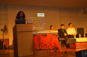 The invocation prayer was played on flute by Anagha of I year PME class, accompanied by Abhijeet also from I PME, on keyboard. Welcome note was given by student representative Ananya Mishra of II year class. During the formal session, Prof. Mukund N N Coordinator, circuit 2015, introduced the circuit event to the audience and expressed his hope of taking the Electronics fest to the state level in the coming years. Prof. Benny Sebastian, HOD of Electronics also shared his thoughts related to circuit 2015 with the students.